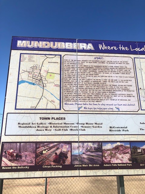 Ajettiin Montoon, mutta koko kylässä ei toiminut netti, joten ei jääty Kui Parkiin, vaan lähdettiin jatkamaan matkaa. Viimein osuttiin Mundubbera nimiseen kylään. Onneksi ensimmäisessä Caravan Parkissa ei ollut metään respassa ja portilla oli puhelinnumero, joka ei ollutkaan voimassa ja jatkettiin matkaa, kunnes tultiin three Rivers nimiseen caravan parkkiin. Aivan ihana paikka. Kui Park, jossa asustelee melkoinen määrä appelsiini ja mandariinipomijoita. Ovat kotoisin Solomon saarilta ja Vanuatusta. Lisäksi paikalla paljon meitä Grey Nomadeja. Osa eläkeläisiä ja osa käy pomimassa hedelmiä ja yksikin pariskunta kertoi asuneensa asuntovaunussa vuosikausia ja hankkivat elantonsa työllä hedelmätarhoilla ym. Hyvin soosiaalista porukkaa ja iltaisin leirinuotio, jolle kokoonnutaan drinkille viiden jälkeen. Leirinuotiolle voi tilata ruokatarjoilunkin ja toisena iltana otettiin kanaa ja mixed grill.